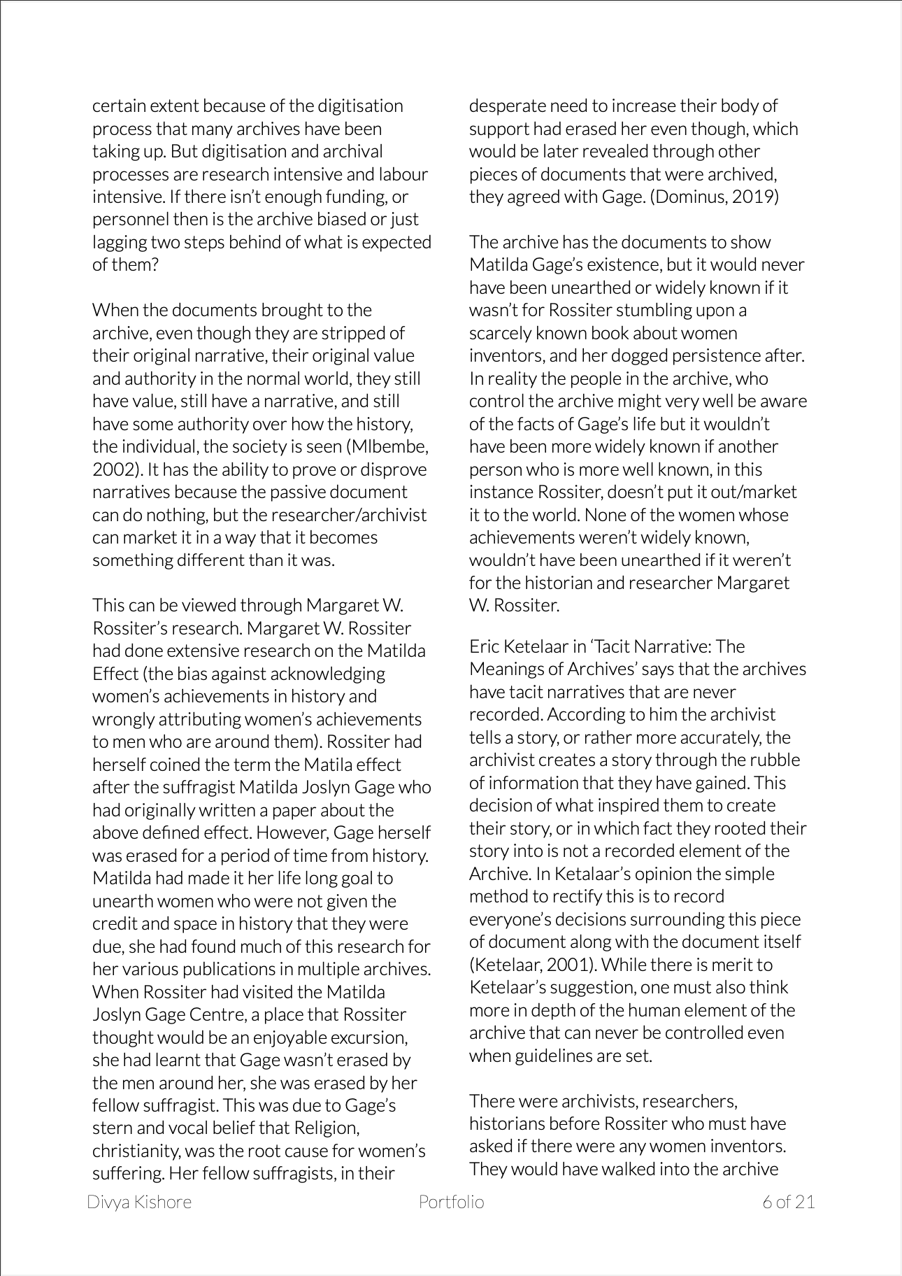 My main focus for this portfolio was showing range in my artistic and academic research abilities. Along with not wanting to produce anything new at that particular moment (burnout from chronic illness is real, do not judge me).
